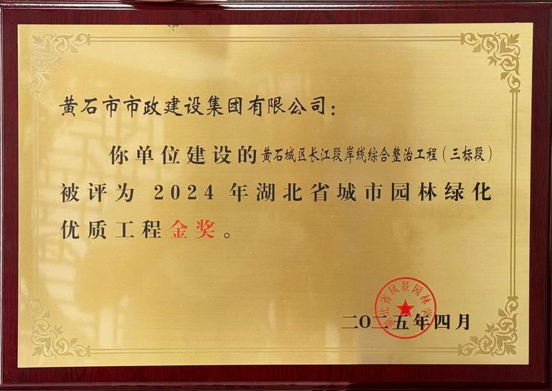 2024年度湖北省城市园林绿化优质工程金奖(黄石城区长江段岸线综合整治工程三标段)